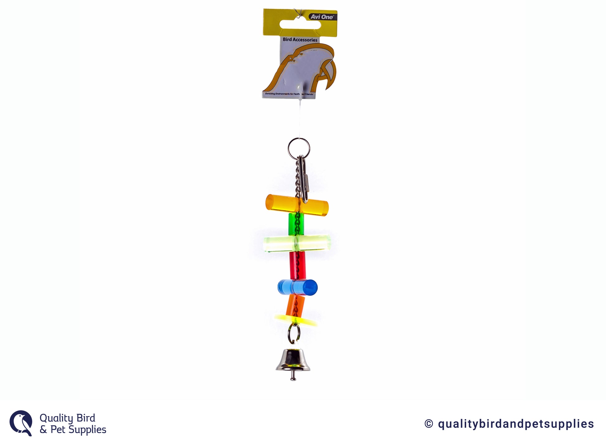 In a simple hanging design, this toy features colourful acrylic sticks that will get your bird poking, pecking and kicking!