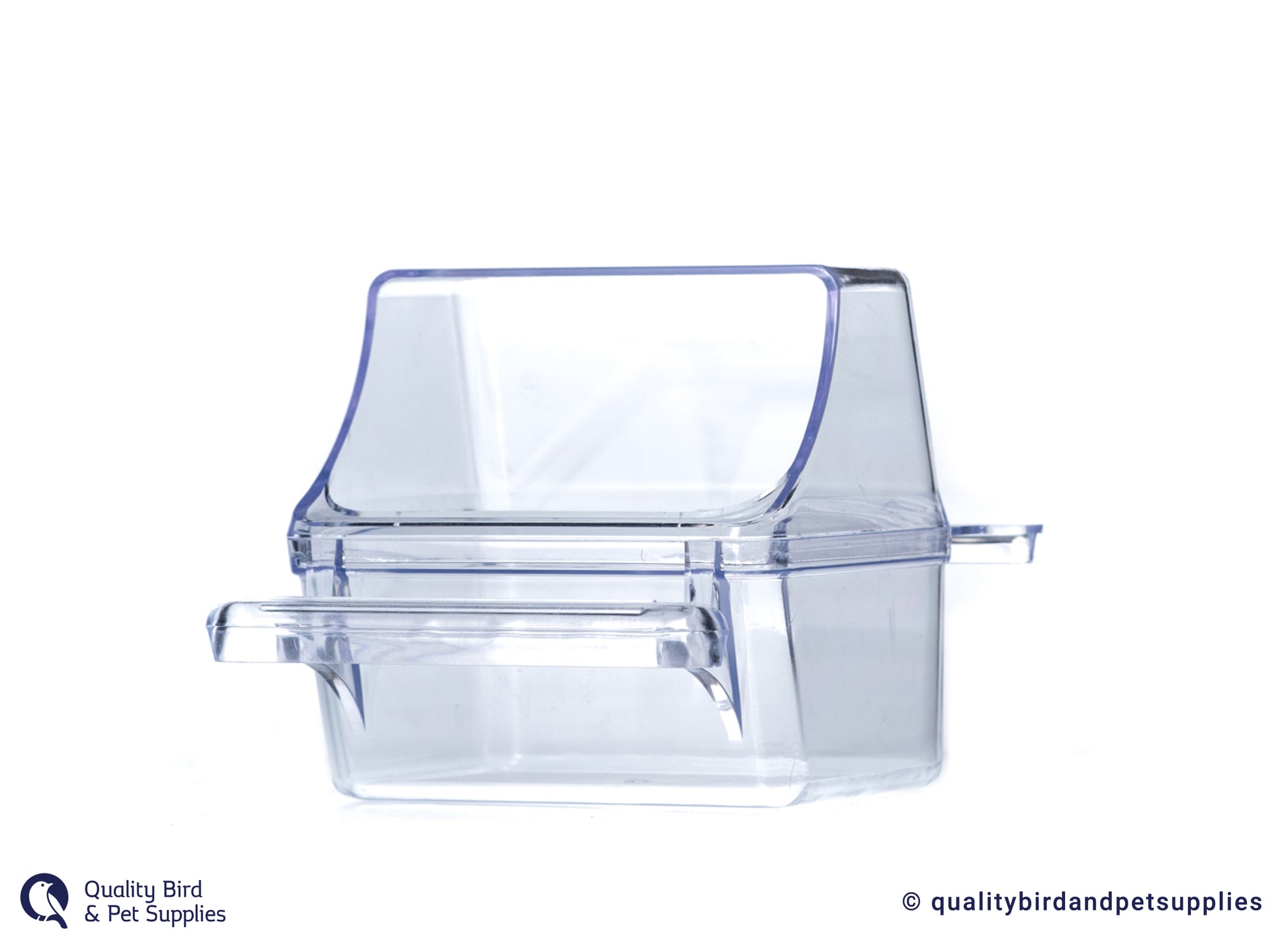 Sturdy plastic feeder with perch and cover for medium and large sized Avi One cages.