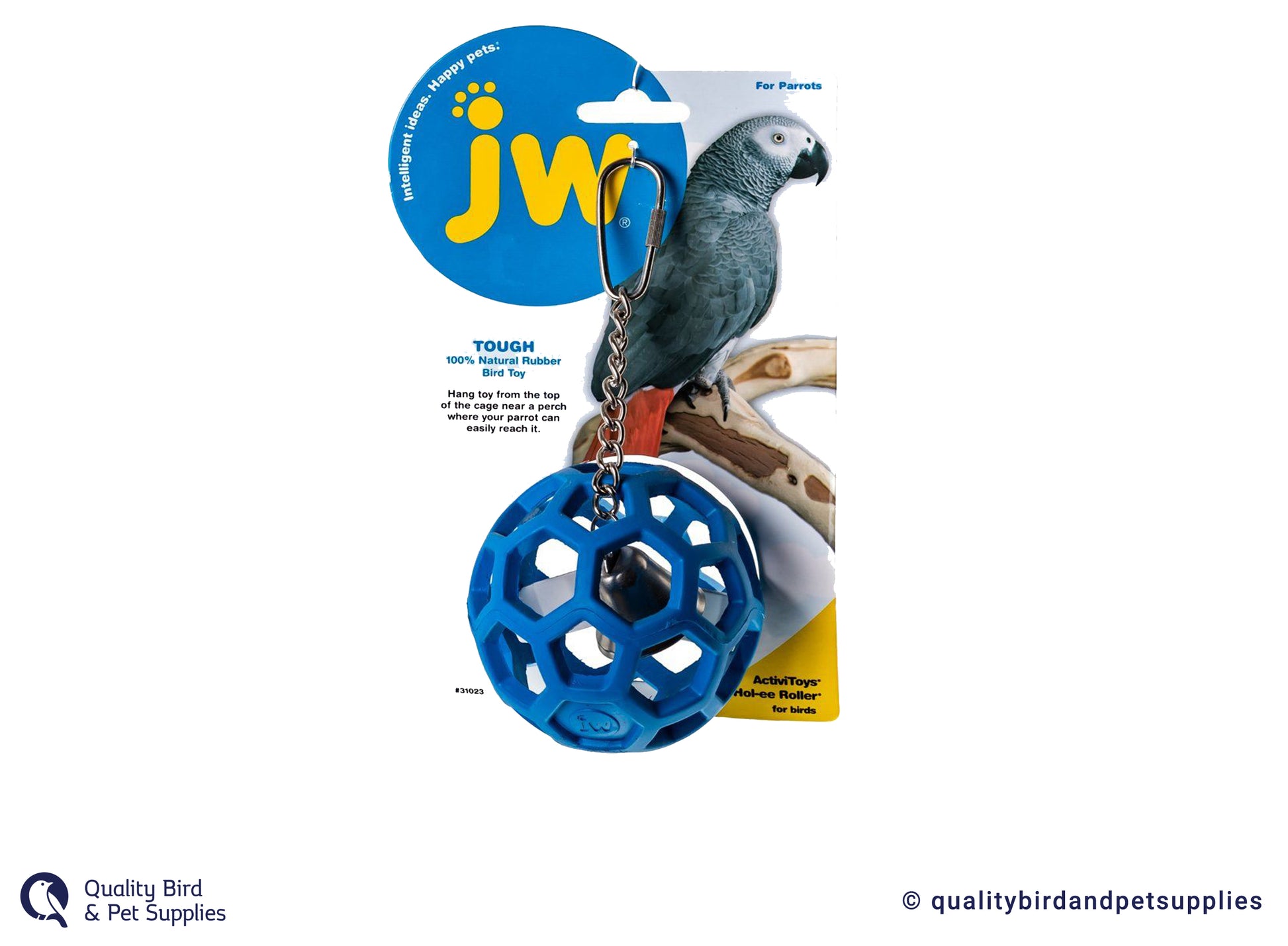 Hang toy from top of cage near a perch where your parrot can easily reach it.