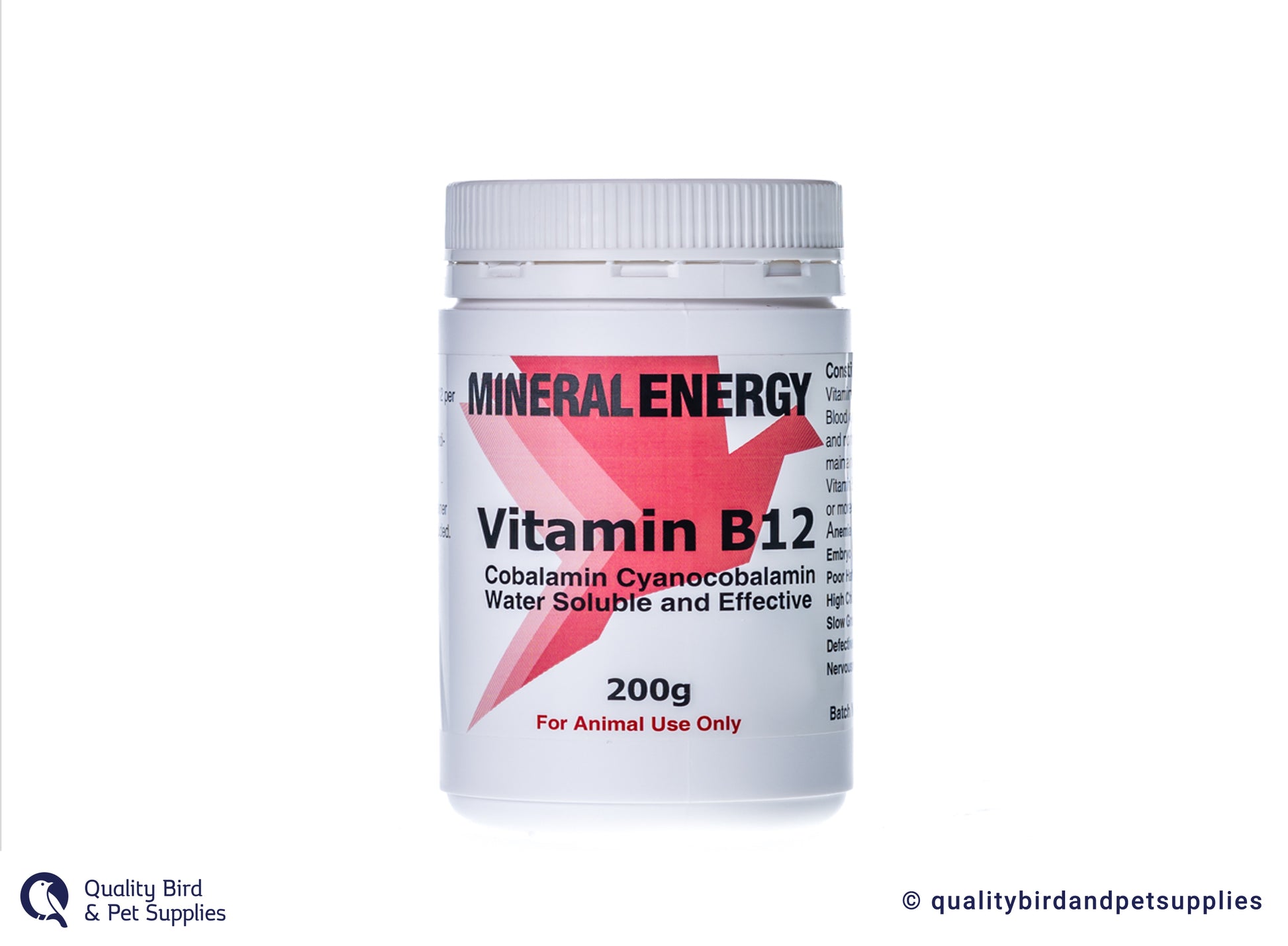 Vitamin B12 aids in the formatting of red blood cells, promotes a healthy appetite and normal growth in birds, as well as maintaining a healthy nervous system.