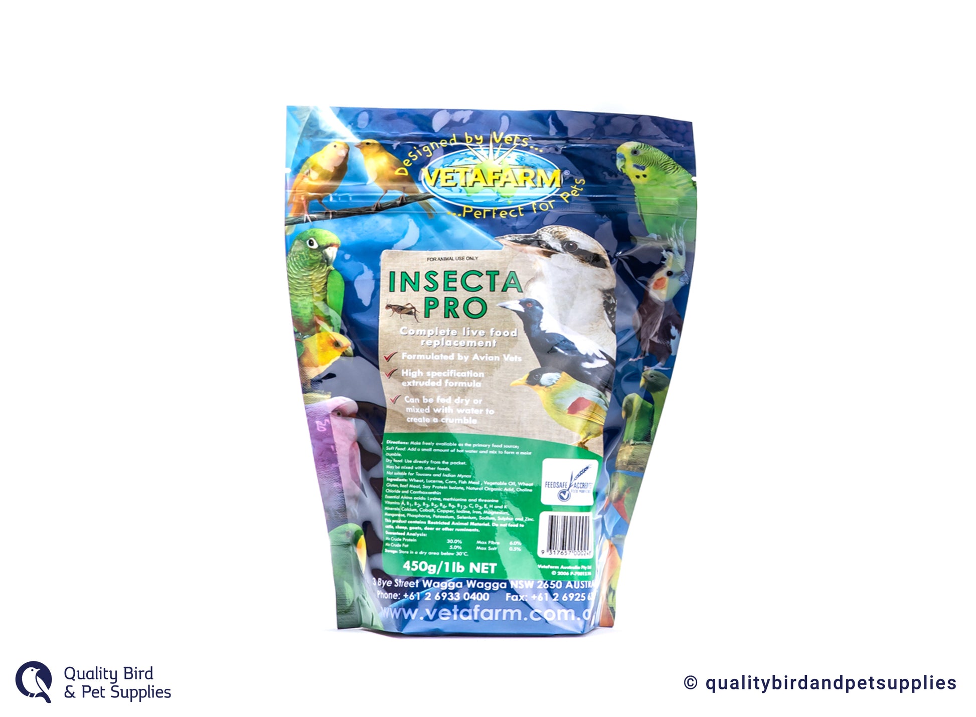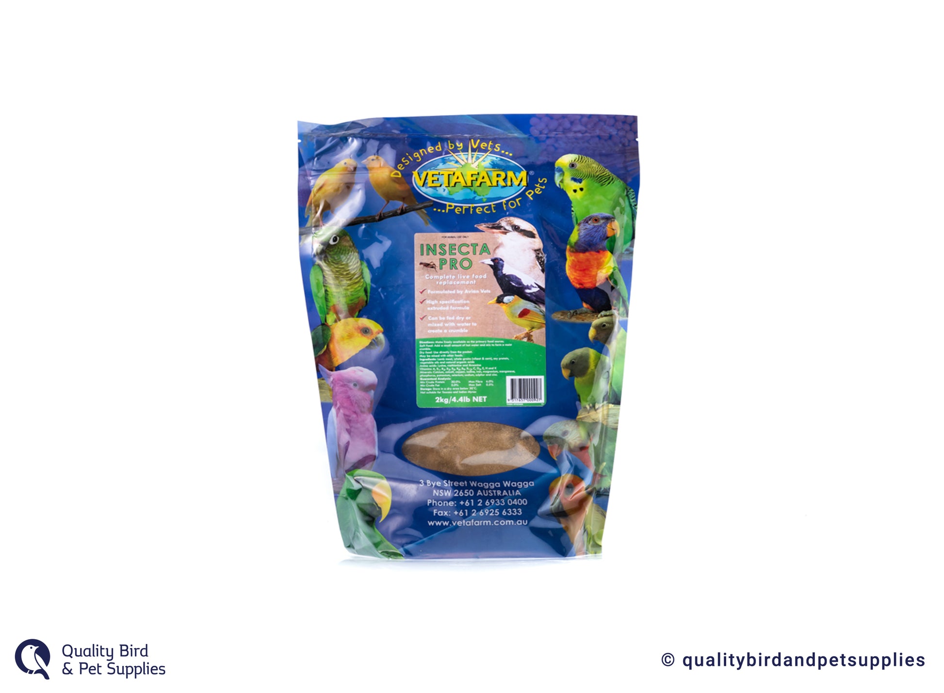 Key features: Takes the mess and guesswork out of feeding insect eating birds. Can be fed dry, mixed with water to create a crumble, mixed with other foods and fruits or dampened and rolled into balls. Supplies crucial proteins found in insects, that grains and vegetables lack. Stimulates breeding pairs of Insectivores/Omnivores and balances the diet of young. Extrusion cooked for safety and digestibility. Used and recommended by Taronga Zoo Australia.